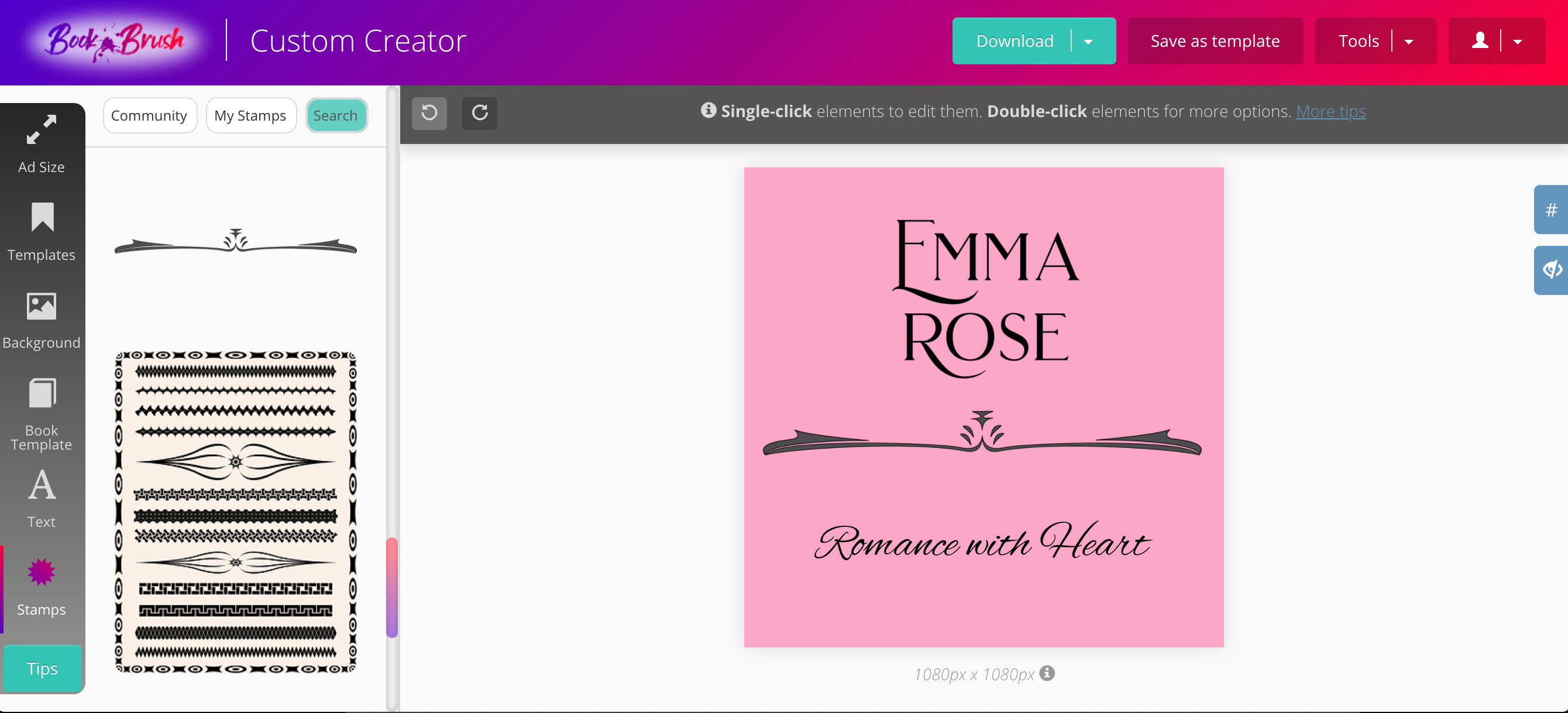 Image of steps to make a custom stamp in Book Brush