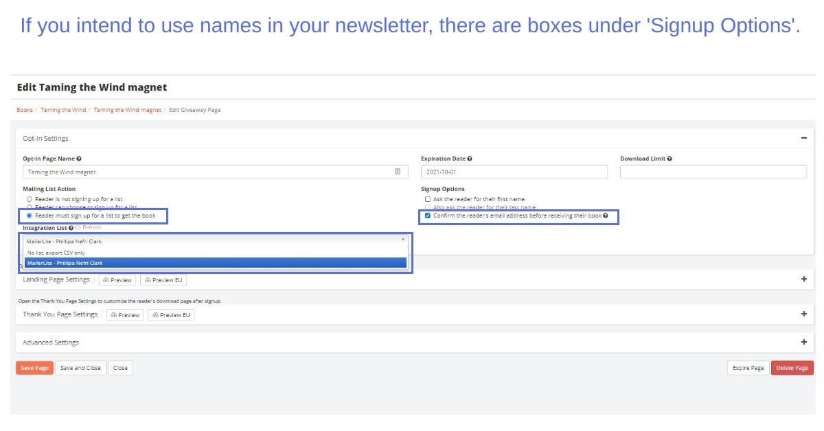 Option for integrating into your mailing list