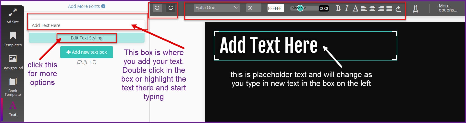full editing panel in Text